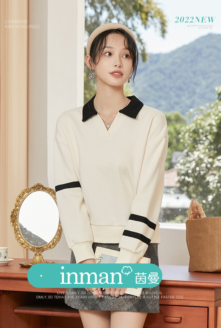 2022秋冬新款百搭宽松趣味印花套头花边蕾丝领拼接纯棉卫衣女